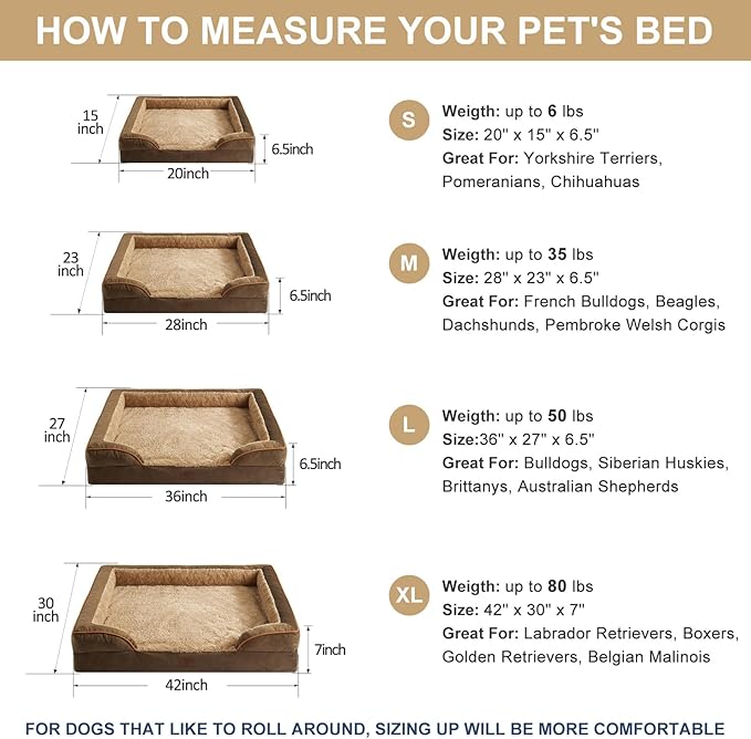 • SOFA-STYLE BED DESIGN: Dog bed with C-shaped design.The 3-sided 3.5" side bolster of dog pillow adds extra support to your pet's neck and head, while the C-shape design makes your dog feel safer and sleep more peacefully.