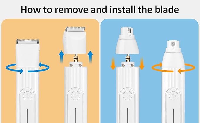 • 【Complete Trimming Tools】Get four trimming tools for the same money. Our dog hair clippers include 3 interchangeable trimmer heads and 1 nail grinder head for dogs and cats who need to trim all parts of their body and sharpen their nails. This cat and dog grooming kit is designed with removable heads that can be quickly changed in just two steps. Simple and easy to use.