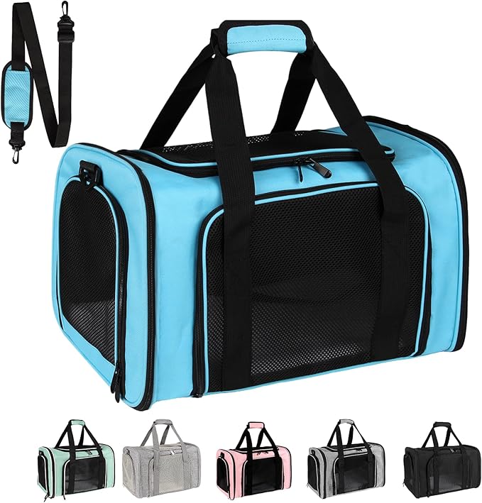 • [Portable Dog Cat Travel Carrier Bag] Our cat dog travel carrier bags are TSA airline approved for most major airlines. The double strap design allows you to carry the pet carrier bag over your shoulder or in your hand, making it easy for you to carry it to any mode of transport, thus ensuring your pet's condition and safety all the way.