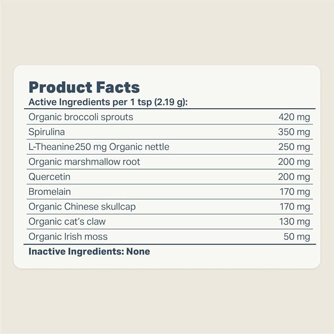 • Supports normal detoxification: Organic broccoli sprouts initiate Phase II liver detoxification and spirulina helps detoxify the skin from everyday toxins.