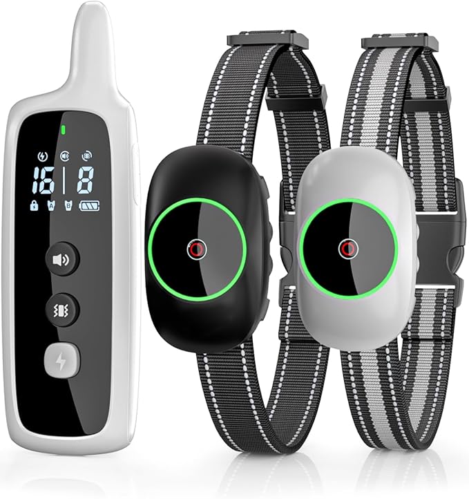 Dog Shock Collar for 2 Dogs, Dog Training Collar with Remote for Large Medium Small Dogs, Rechargeable E-Collar Waterproof Collars with 3 Training Modes, Range up to 3300Ft-Grey