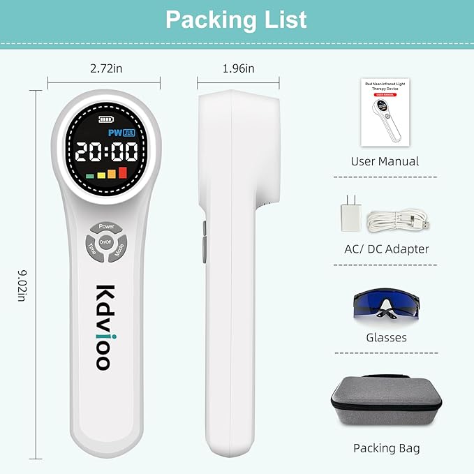• 【Package Details】 This infra red light therapy includes 1 * Red Laser Light Therapy + 1 * AC Adapter with Charge Cable + 1 * Eye Protection Glasses + 1 * User Manual + 1 * product bags. More detail information, please see the product manual.If you have any questions about the handheld red light therapy device, please contact us. We are committed to providing you with satisfactory services.
