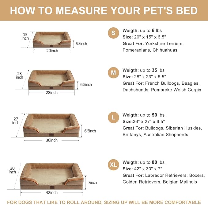 • Size: (Dog beds for medium dogs) 28x23x6.5 inch dog bed medium size dog could load-bearing less than 35lbs .For dogs that like to roll around, sizing up will be more comfortable.