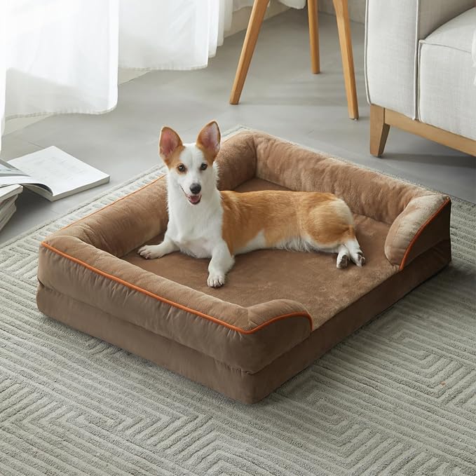 WNPETHOME Waterproof Dog Beds for Medium Dogs, Orthopedic Medium Dog Bed with Sides, Big Dog Couch Bed with Washable Removable Cover, Pet Bed Sofa with Non-Slip Bottom for Sleeping