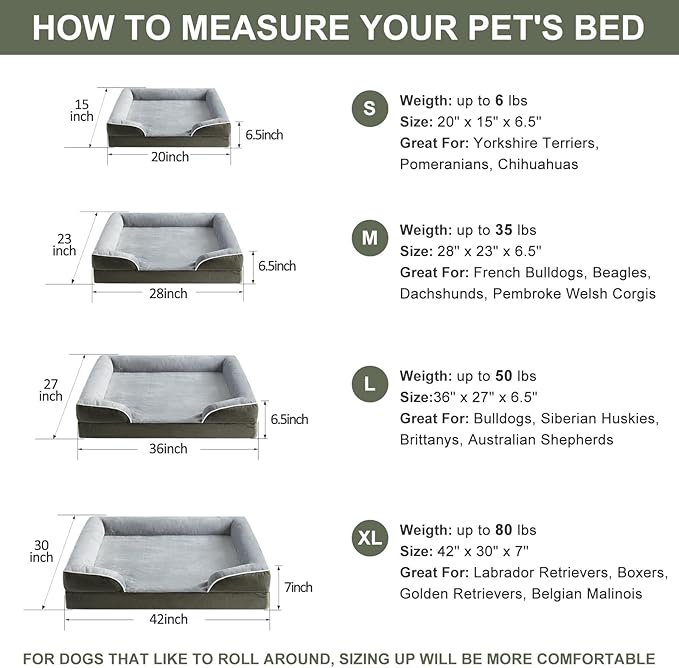 • Size: (Dog beds for large dogs) 36x27x6.5 inch dog bed large size dog could load-bearing less than 50lbs .For dogs that like to roll around, sizing up will be more comfortable.