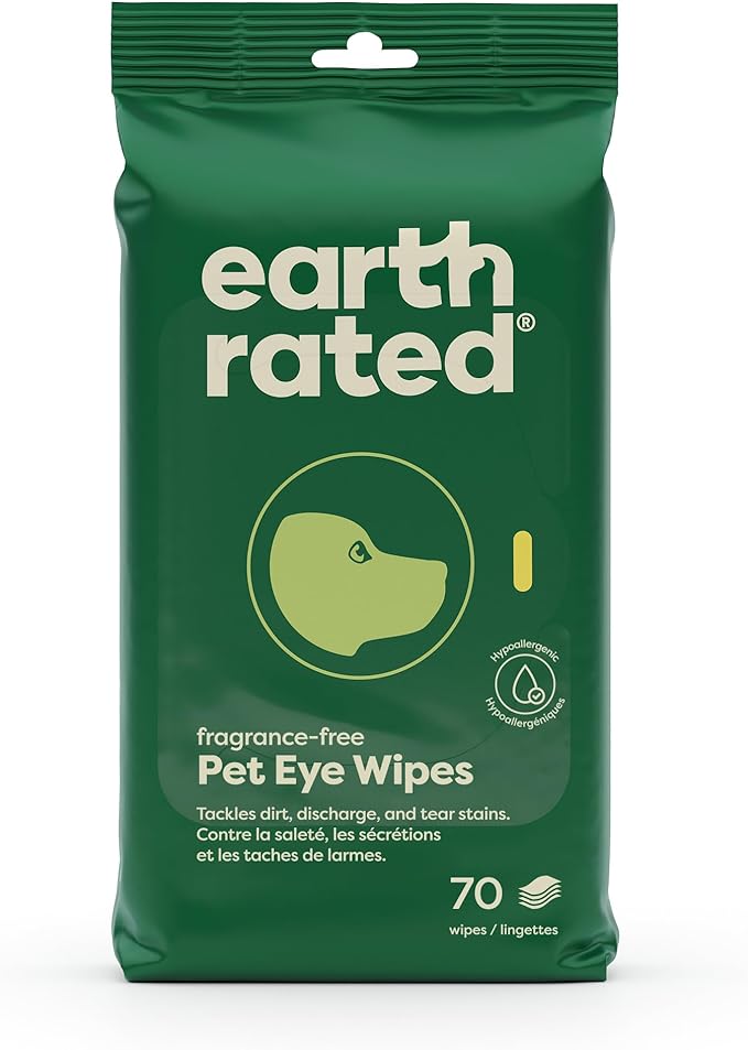 Earth Rated Pet Eye Wipes, Hypoallergenic Eye Wipes for Dogs & Cats to Remove and Reduce Tear Stains & Eye Discharge, Fragrance Free, 70 Count