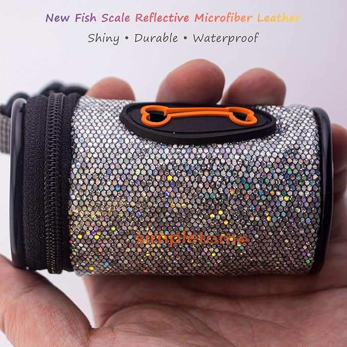 simpletome Dog Waste Bag Dispenser for Leash Belt Waterproof Microfiber Leather YKK Zipper (Bling)