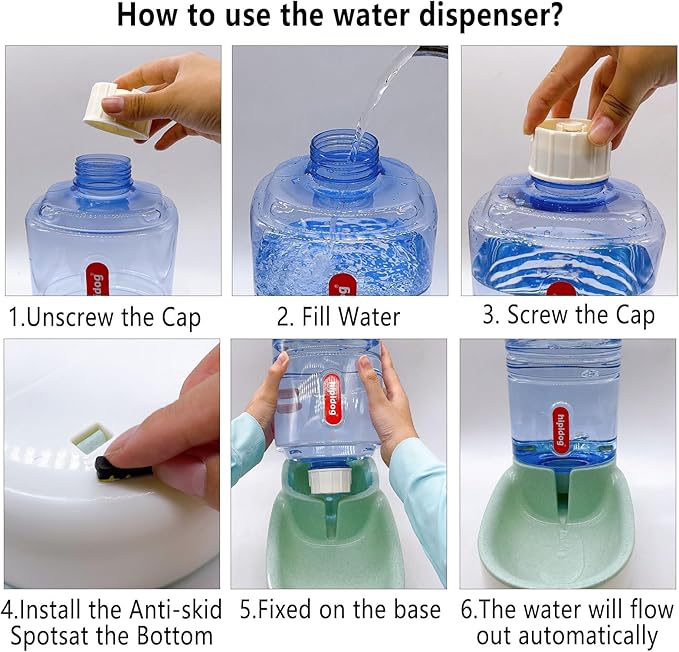 • 【Automatic Gravity Water Filling】Using siphon principle and spring water bottle, our automatic pet drinking fountain can ensure a consistent water supply. For pets who need much water or when you're out working all day,Perfect for not having to feed the animals multiple times a day or fill water constantly.