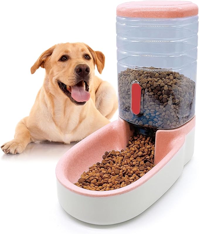 kathson Automatic Cat Feeder 1 Gallon Gravity Dog Food Dispenser Large Capacity Self Feeding Pet Food Bowl for Puppy Kitten Rabbit Pink