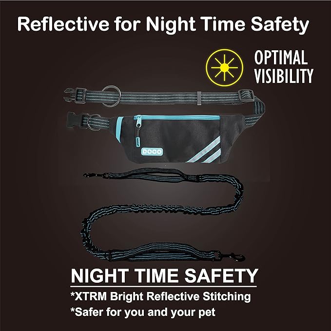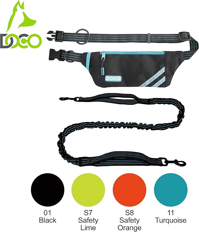 DOCO Lite Dog Jogging Belt with Zipper Pouch, Bungee Leash for Walking, Hiking, Jogging with Dog, Made for 10-100 lb. Dogs (Turquoise)