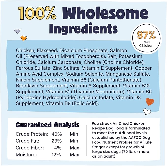 Pawstruck All Natural Air Dried Dog Food w/Real Chicken - Grain Free, Made in USA, Non-GMO & Vet Recommended - High Protein Limited Ingredient Full-Feed - for All Breeds & Ages - 2.5oz Trial Bag