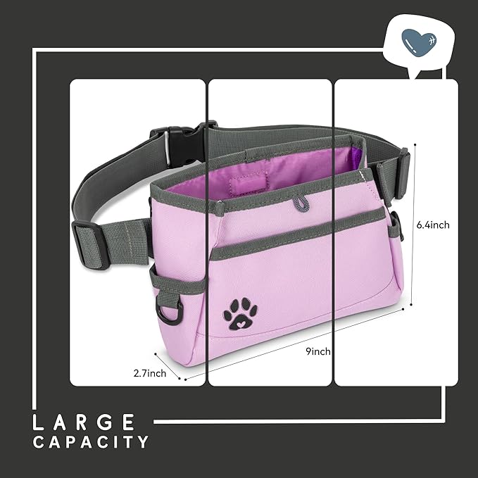 Dog Treat Pouches for Pet Training - Custom Design - Dog Treat Bag for Dog Training & Behavior Aids - Fanny Pack for Dog Walking Bag - Puppy Training Treat Pouch & Snacks Bag Pouch (Light Purple)