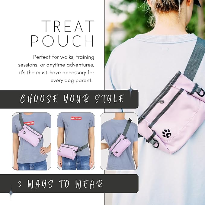 • Multi Wear: Designed to be versatile, our dog treat bags training pouch is perfect for any training occasion. The training treat pouch can be worn around the waist for a dog walking fanny pack, dog walking bag crossbody, or clip on pouch for belt.