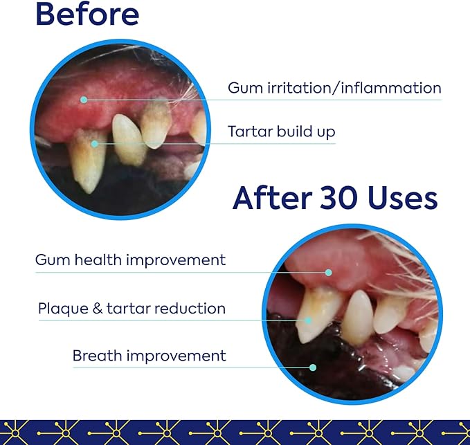 • AWARD-WINNING & VETERINARIAN RECOMMENDED: Recommended by veterinarians, pet parents, & the winner of multiple innovation awards. Outsmart the causes of plaque, bad breath, & improve the quality of life for your animal - all with no brushing needed. Don't forget to add this to your dog stuff list!