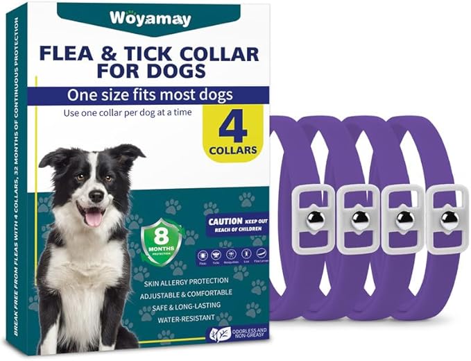 4 Pack Flea Collar for Dogs, 8 Months Flea and Tick Prevention for Dogs, Natural Flea and Tick Collar for Dogs, Tick Collar for Dogs, Waterproof Dog Flea Collar, One Size Fits All, Purple