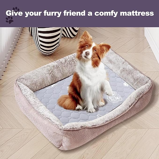 • 4 layer of upgraded materials : washable pee pads for dogs consists of four layer, The first layer of smooth and breathable surface ensuring the ultimate comfort of the pet. The middle layer can absorb liquids, The third layer is breathable and waterproof materials, which can save cleaning times, bottom of the dog mat is designed with a non-slip gel bottom layer let the puppy have security.