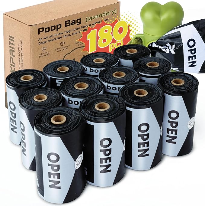 KIPRITII Strong-Endurance Dog Poop Bag Set with Dispenser & Leash Clip, Thick Waste Poop Bags for Puppy/Small/Medium/Large Dog & Cat