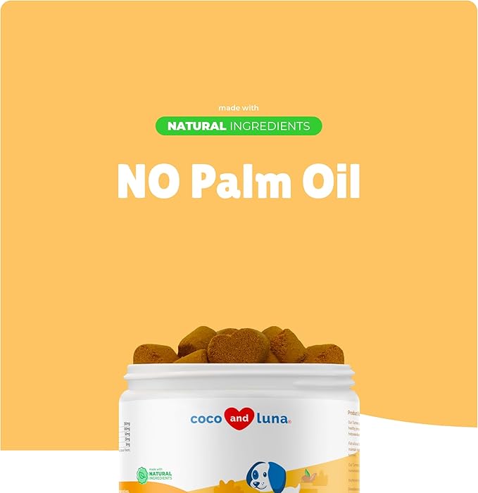 • Turmeric for Dogs - Coco and Luna Turmeric supplement contains Curcumin which is an antioxidant that supports joint, hepatic, gastrointestinal and cardiovascular health.