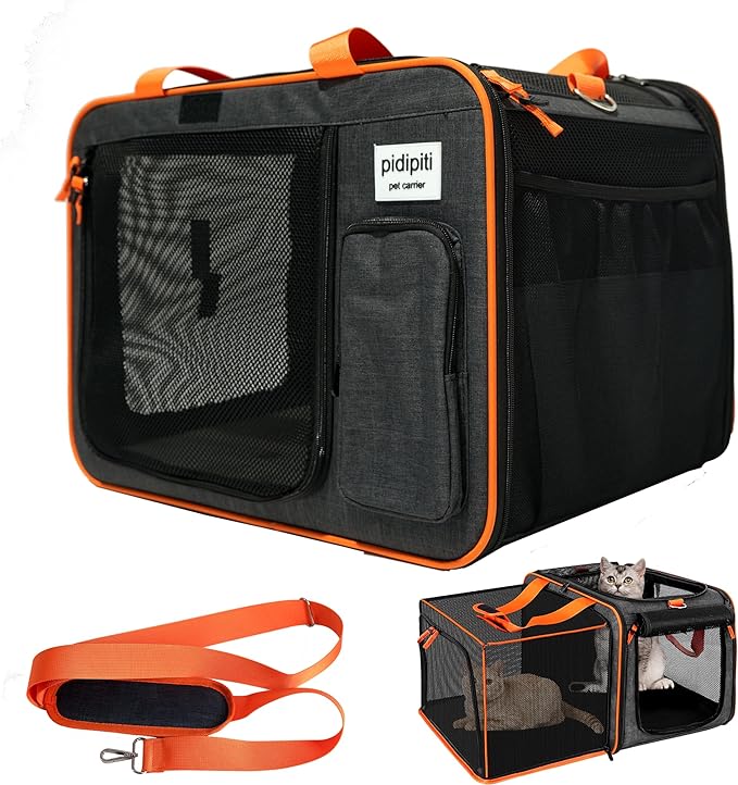 20 x 14 x 14 inches expandable pet carrier for 1 large cat Under 25 lbs,2 medium cats/rabbits 20 lbs+, 1 small dog under 15 lbs,cat Crate/Bag for short trip/long distance car Travel