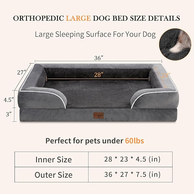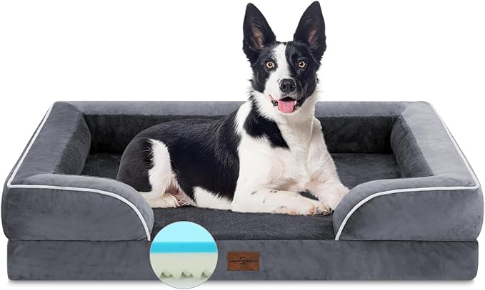 Cooling Dog Bed for Large Dogs, Memory Foam Orthopedic Dog Bed, Waterproof Dog Beds, Washable Dog Bed with Removable Cover,Pet Bed Dog Sofa with Bolster(Large,Leaden Grey)