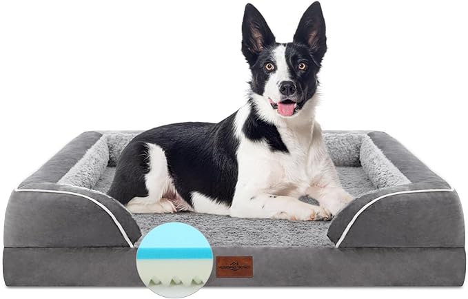 Cooling Dog Bed for Large Dogs, Orthopedic Memory Foam Dog Bed, Waterproof Dog Beds, Washable Dog Bed with Removable Cover,Pet Bed Dog Sofa with Bolster(Large,Silver Grey)