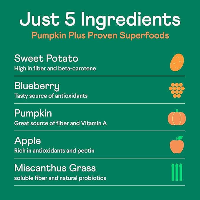 • All-Natural Ingredients: Made with real pumpkin -- famed for soothing stomachs, fighting the runs, and improving constipation.