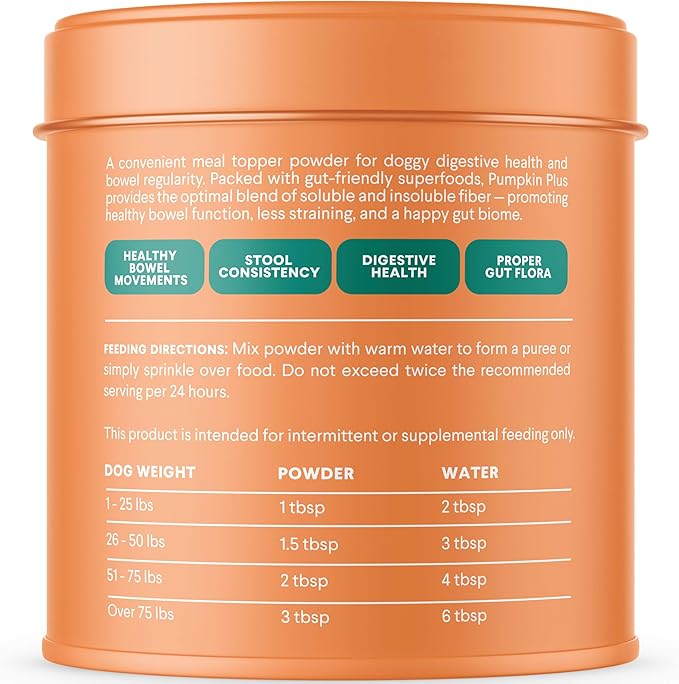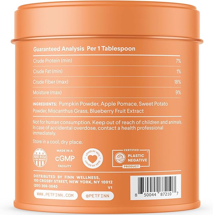 Finn Pumpkin Plus: Fast-Acting Digestive Relief for Loose Stool, Constipation, and Sensitive Stomachs | Superfood Meal Topper Powder for Dogs