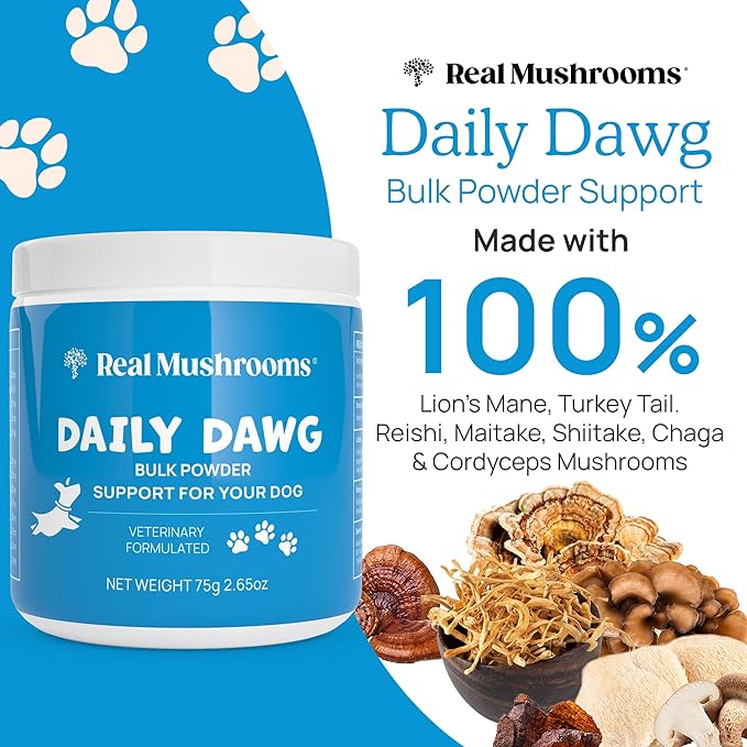 Daily Dawg Mushroom Extract Powder Support - (2.65 oz) Bulk Mushroom Powder Supplement & Dog Vitamins with Real Mushrooms Lion's Mane, Cordyceps Mushroom, Turkey Tail, Reishi & Shiitake