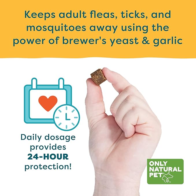 • HOLISTIC HEALTH BOOST: Formulated with nature's goodness, including garlic, brewer's yeast, and complex B-vitamins, this supplement goes beyond flea and tick prevention. It contributes to improved overall pet health, providing a holistic approach to their well-being.