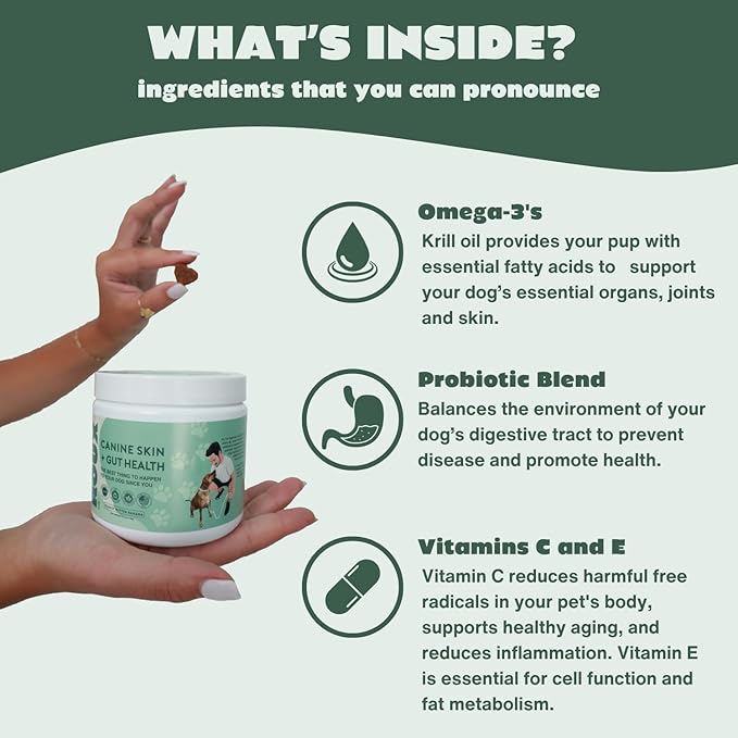 • Support for Paw Licking, Smelly Paws & Ears, Scratching & Itching, Seasonal Allergies, Eating Grass and Head Shaking: Each of our veterinarian formulated probiotic chews are formulated with a proprietary blend of probiotics, omega 3’s and vitamins that were specifically created to help your best friend live a longer, healthier life.