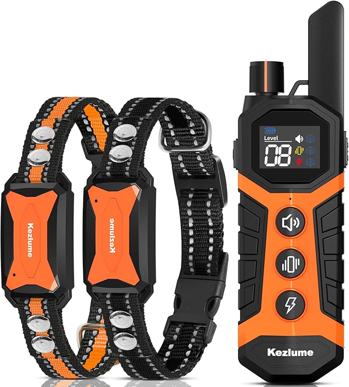 Dog Shock Collar for 2 Dogs- 4000Ft Waterproof Dog Training Collar with Remote for 5-120lbs Small Medium Large Dogs, 3 Channels, Rechargeable E Collars with Beep Vibration Safe Shock Modes (Orange)