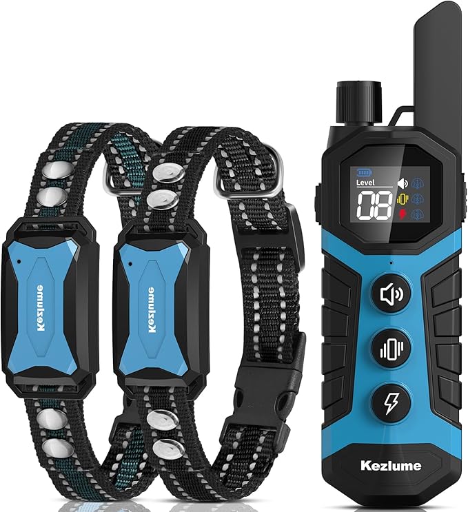 Dog Shock Collar for 2 Dogs- 4000Ft Waterproof Dog Training Collar with Remote for 5-120lbs Small Medium Large Dogs, 3 Channels, Rechargeable E Collars with Beep Vibration Safe Shock Modes (Blue)