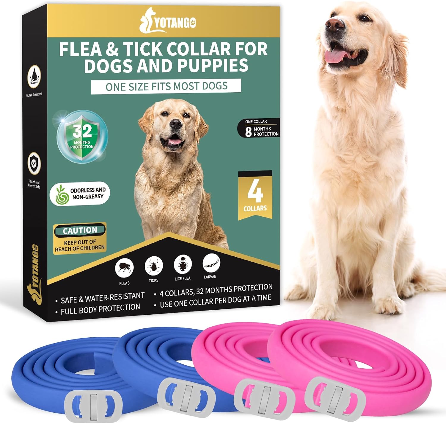 • 32 MONTHS PROTECTION - Our flea and tick collar for dogs comes with 4 packs with a total of 32 months of flea and tick prevention for dogs. One of the key benefits of the dog flea collar is designed with controlled slow-release active ingredient