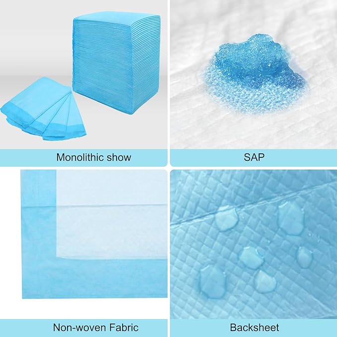 • 🐕Pet training mat 5-layer design: The design has 5 layers, each layer has a corresponding role, including the bottom layer, water absorption core and leak barrier. The bottom film is made of casting film to ensure no water leakage