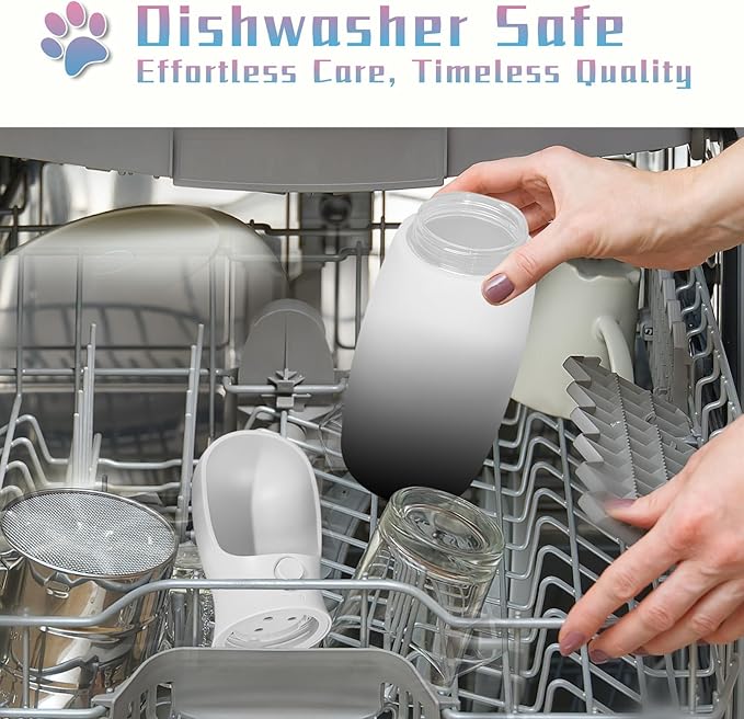 • 【Food Grade & Dishwasher Friendly】Our dog water dispenser is crafted from high quality food-grade material, the odorless BPA free plastic ensures the health and safe of your furry friend. Also, it's easy to disassemble, and is safe for the dishwasher, adding extra convenience to the clean.