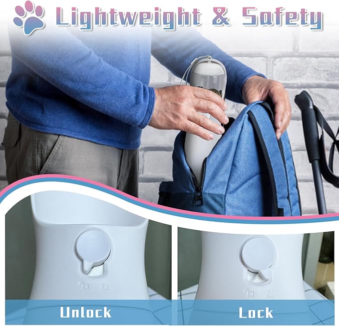 • 【Portable Pet Water Supplies】Whether you're in your backyard, on a road trip, at the park, walking, camping, hiking, or any other outdoor activities, this portable dog water bottle ensures your pet get clean fresh water anytime and anywhere.