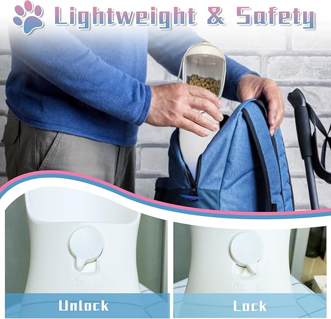 • 【2-in-1 Design】Our dog walking accessories combine a 19oz large capacity pet water bottle with an extra pet food container, ensuring your furry friend has both food and drink covered during outdoor walks, hikes, camping, and travel. The unique color design makes our pet water bottles the perfect dog gifts.