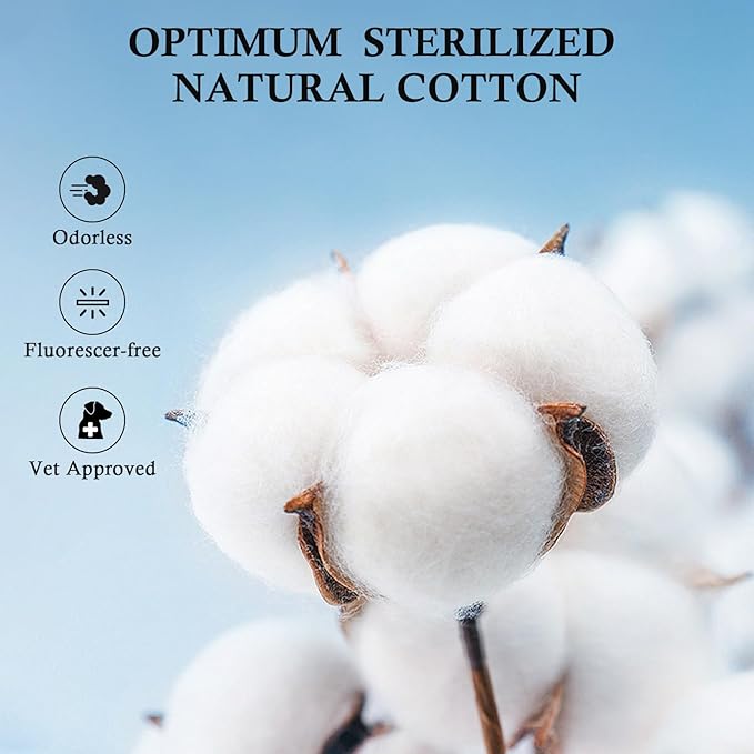 • Sterilized natural cotton with great absorption for safe and comfy use