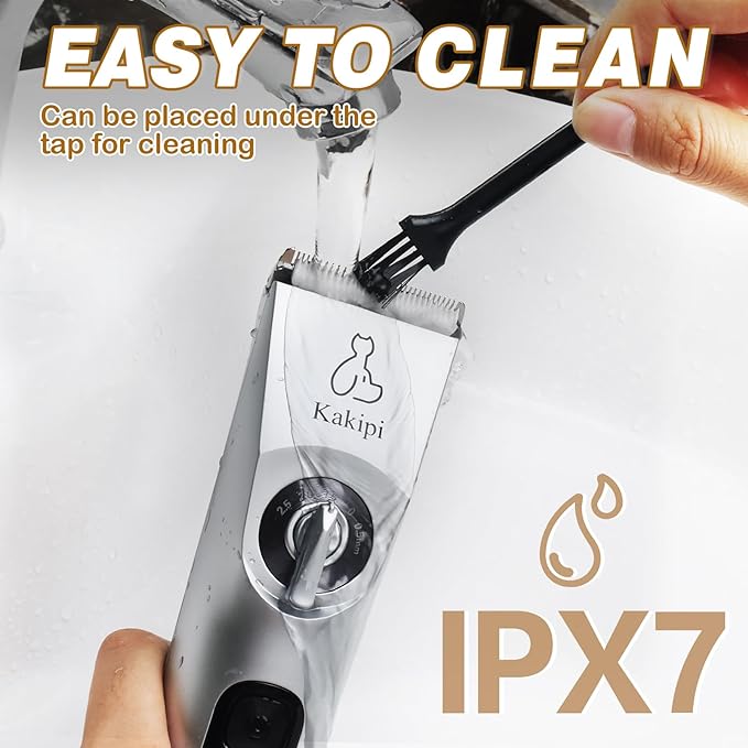 • IPX7 Waterproof: The waterproof level of the pet grooming clippers kit is upgraded to level 7 waterproof, which is more convenient for cleaning and maintenance, and no need to worry about short-circuiting and other failures of the battery, which effectively improves the service life of the dog razor.
