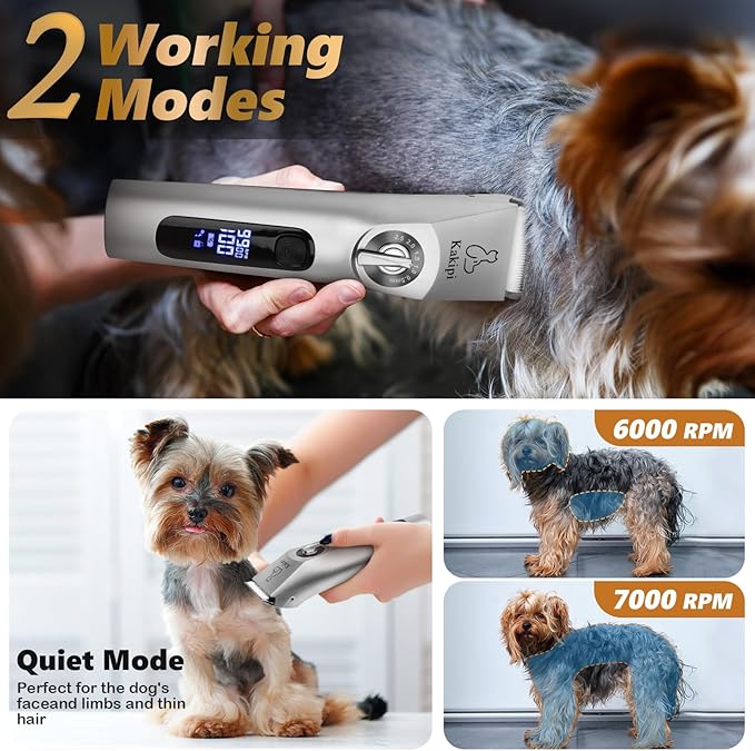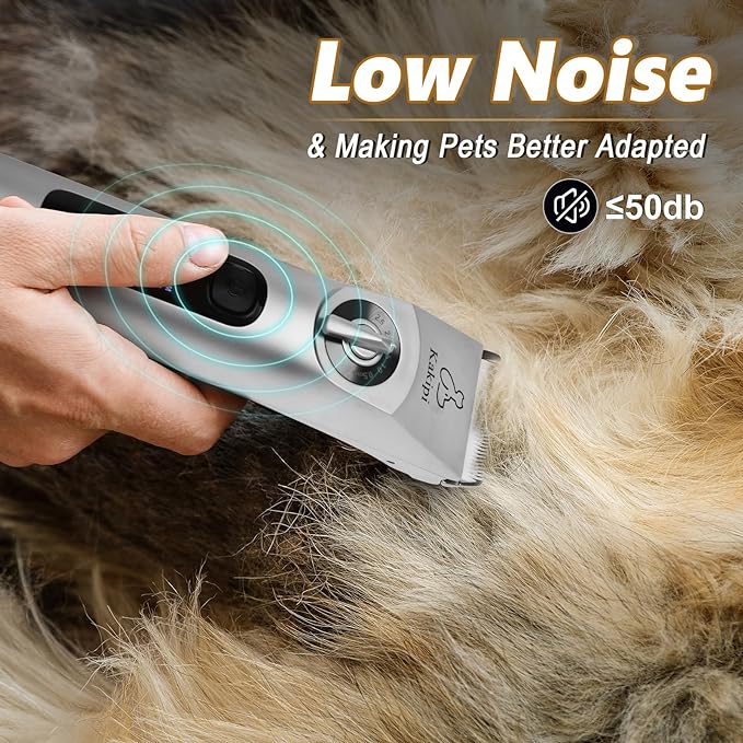 • 2 Speed Modes & Low Noise: The dog hair clippers have two speed modes to choose from 6000 and 7000 rpm, allowing your pet to better adjust to the sound, and the noise level is only about 50 db, so you don't have to worry about scaring your beloved pets.