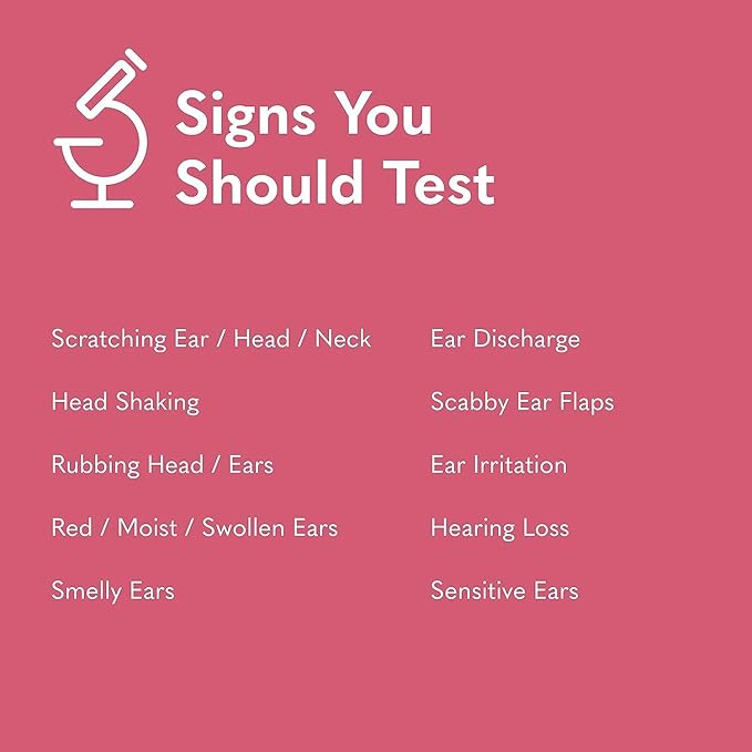 • USE FOR SMELLY, ITCHY OR SORE EARS: Keep test on hand for frequent ear infections, early detection, and preventative care for your dog. Screens for yeast and other ear irritations. Other signs of infection include scratching ear/head/neck, head shaking, rubbing head or ears, red/moist/swollen ears, ear discharge and scabby ear flaps