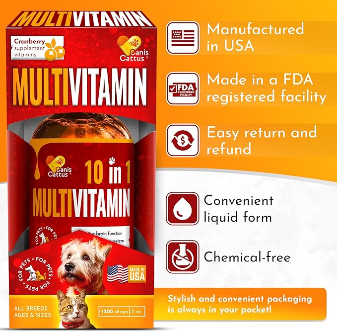 • ❀️ 𝗣π—₯π—’π—£π—˜π—₯ 𝗙𝗒π—₯ π—”π—Ÿπ—Ÿ π——π—’π—šπ—¦ & 𝗖𝗔𝗧𝗦: Our product Multivitamin offers a blend of vitamins for different dogs' and cats' breeds, sizes, and ages in a concentrated, easy-to-use liquid.