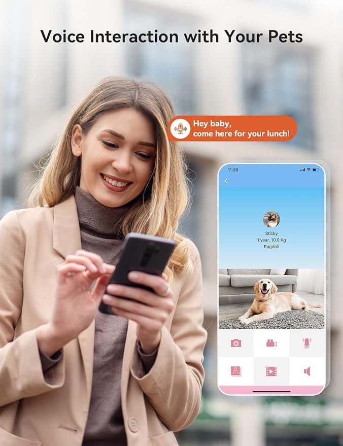 • HD Camera: WOPET dog feeder automatic with camera allows you to see, hear how your beloved pet is eating when you're not at home. Connect with your pet while you are away with the supported audio chat/recording. Sharing your favorite moment on social media directly.