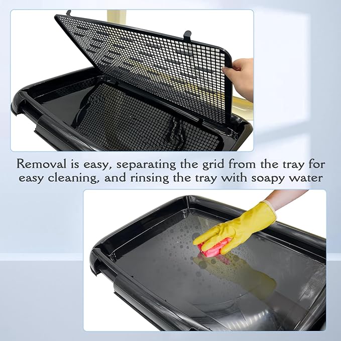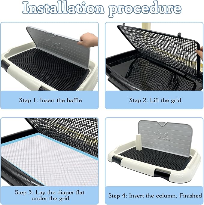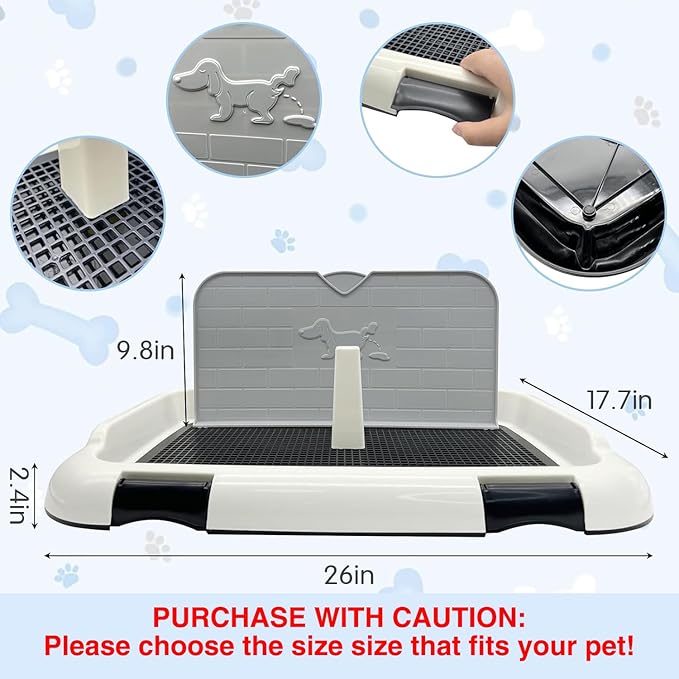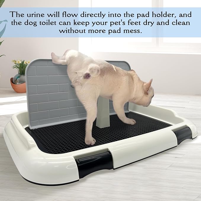 • 【INTIMATE DESIGN】 This toilet training rack has a grid mat, fence splash wall and movable posts, can quickly penetrate pet urine, directly into the urine tray, does not leak, will not dirty the floor and furniture, but also can keep the surface dry and clean, to bring your pet a good experience. Create a dry and comfortable living environment.