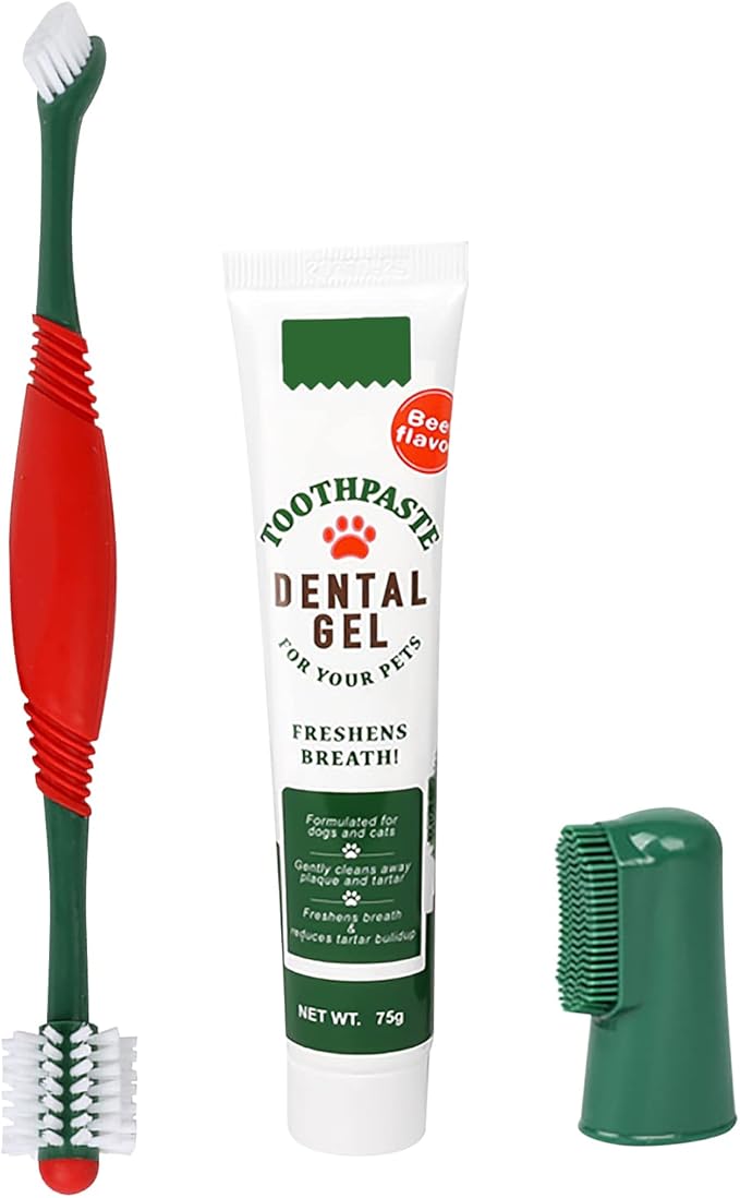 Pet Dog Toothbrush Toothpaste Finger Toothbrush Set Cat Toothbrush Teeth Cleaning Dental Care Kit Fresh Mouth Kit Beef Flavor Dog Cat Removal Plaque Gum Keep Tooth Health