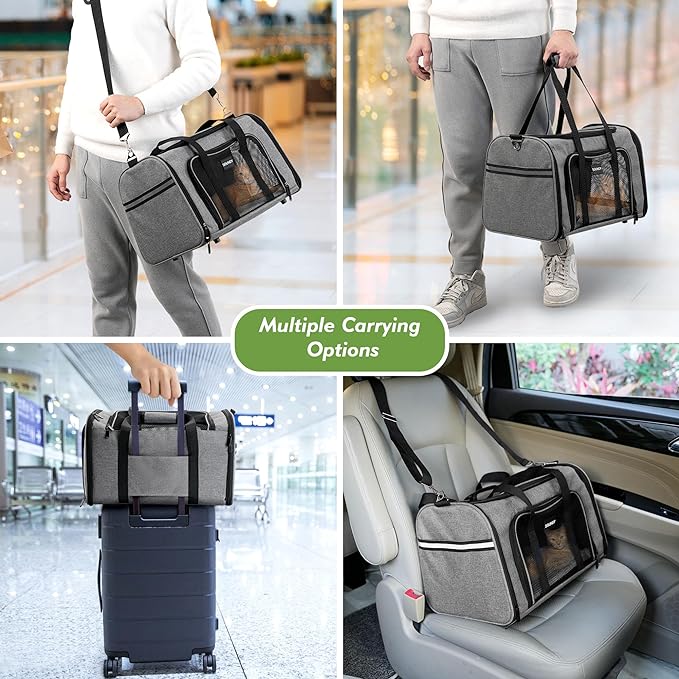 Large Cat Carrier Dog Carrier Pet Carrier Under 25 Lbs,Large Cats Small to Medium Dogs Portable Soft Sided Folding Travel Pet Carrier, Cat Carrier for 2 Cats Car Travel Carrier(Large, Grey)