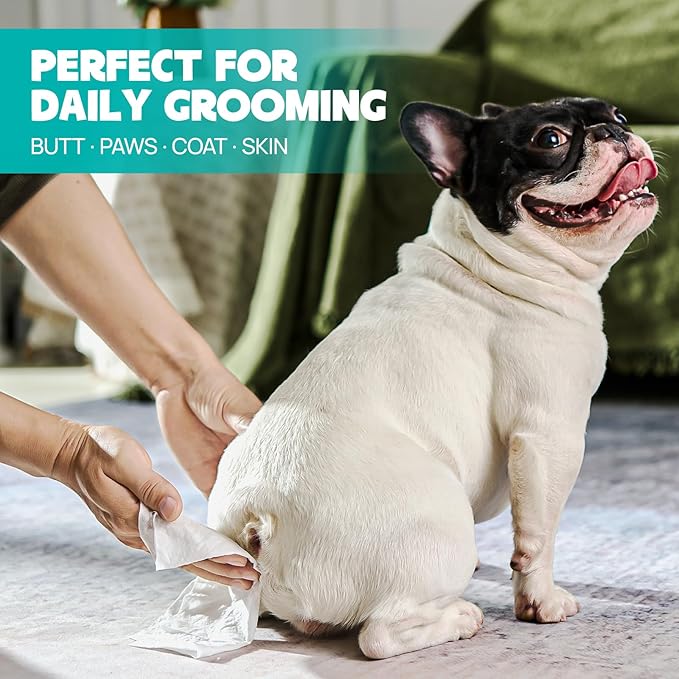 HICC PET Flushable Plant Based Dog Wipes for Pets Cleansing & Deodorizing Anal Gland Hygienic Wipes for Dogs & Cats -Grooming Wipes for Paws, Body, and Butt -Puppy Essentials (100 Count)