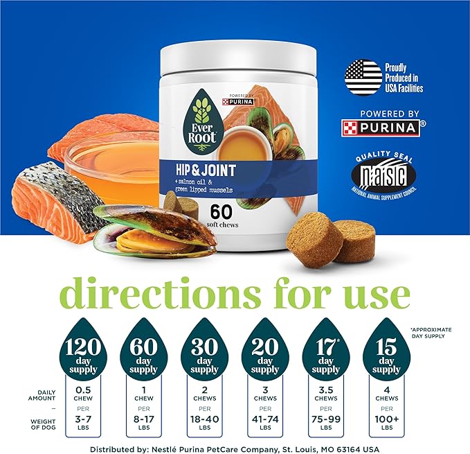 • Joint supplement for dogs made with Green-lipped mussels for anti-inflammatory benefits