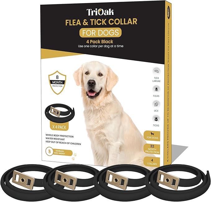 • NON-GREASY: Our flea and tick prevention for dogs collars are made with non-greasy materials. The TriOak collar flea and tick repelling feature is designed to be easy to use for dog owners. Our 4 pack puppy flea and tick collars are very easy to apply and hassle-free—each package of flea collars for dogs is attached with a user manual for customers' convenience.