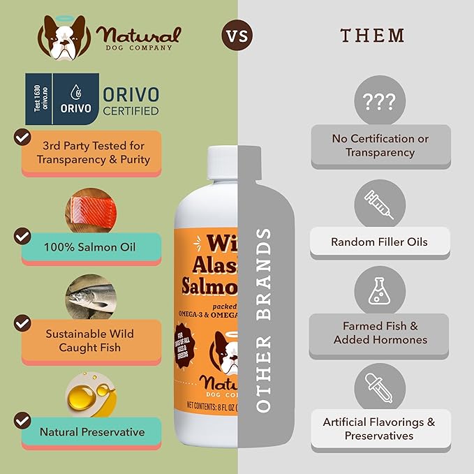 • Quality You Can Trust: At Natural Dog Company we prioritize the well-being of your furry companion, which is why our Wild Alaskan Salmon Oil for dogs is made with the highest standards of quality and safety. It undergoes rigorous testing to ensure it is free from contaminants and meets the strictest industry standards